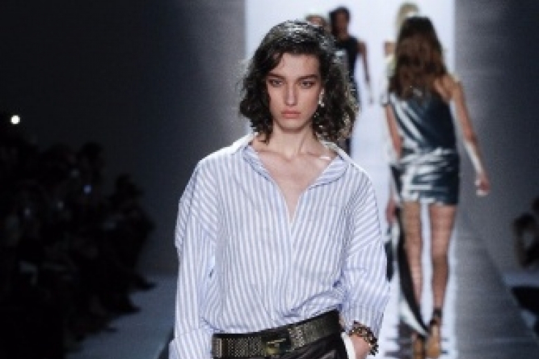 القميص الأزرق المقلم بخطوط رفيعة سر الموضة هذا الصيف......