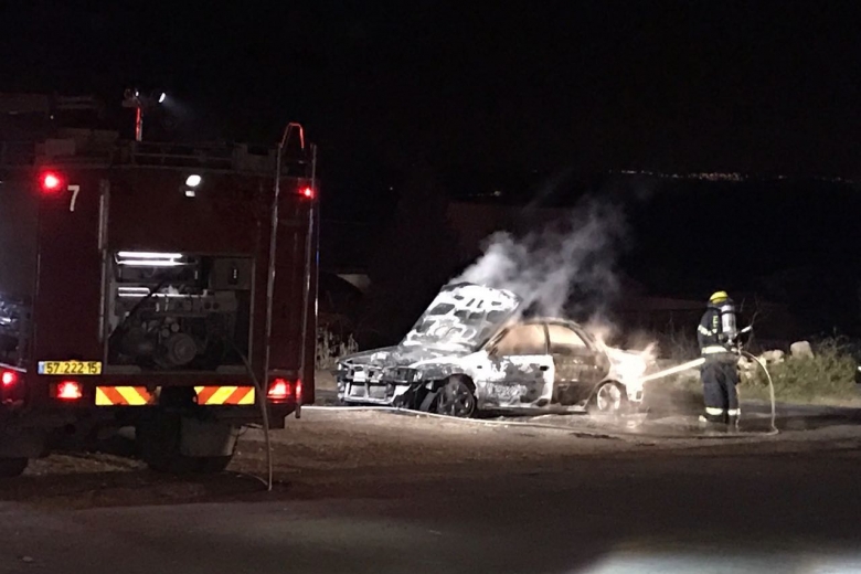 النيران تلتهم سيارة بمنطقة عين جرار في أم الفحم
