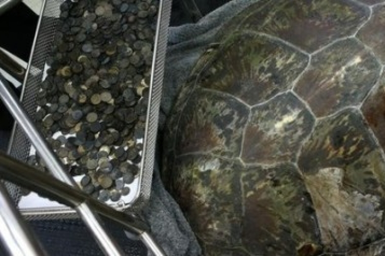 يطلقون عليها لقب "الحصالة".. هذا ما استخرجوه من بطن سلحفاة...