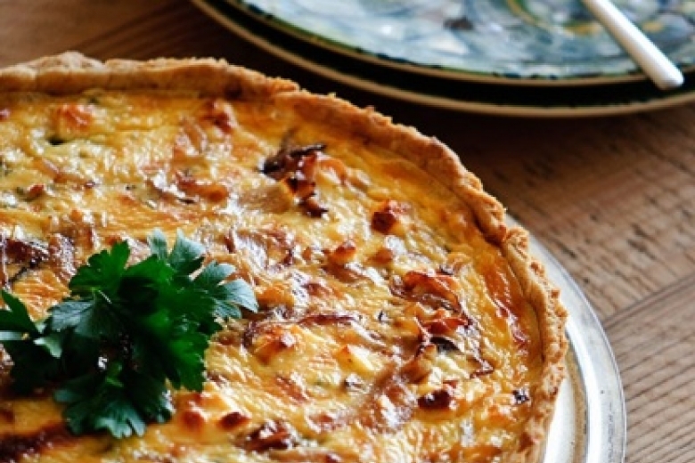 تارت الجبنة الزرقاء والجوز والبصل المحمّر